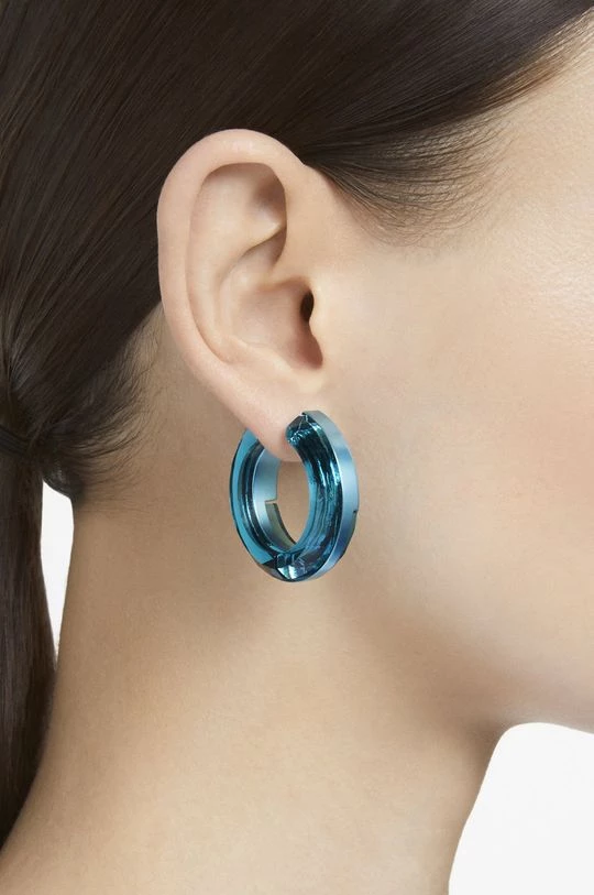 Σκουλαρίκια από τη συλλογή Swarovski. Μοντέλο από από συνδυασμό διαφορετικών υφασμάτων.